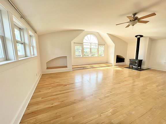 Upstairs: 1 HUGE bedroom with wood stove, large walk in closet, an extra room / office, HUGE bathroom with clawfoot bathtub and separate large marble shower. Cute balcony off the back extra room / office. Stained Glass window by local artist. Downstairs: 2 large bedrooms, lovely bathroom. Living Room has wood burning fireplace and builtins. Kitchen has Sub-Zero refrigerator, dishwasher, gas stove and lots of cupboard space. Extra top loading freezer in basement laundry room. Speed-Queen washer & dryer. High ceilings, maple wood floors and lots of natural light throughout house. Large south facing front porch and a medium sized fenced side yard with deck, cobblestone and grass. House is well insulated and holds its temperature very well. Off street parking. 97 walk score and 99 bike score. This home has been completely renovated and updated. - Renter responsible for utilities. - Landlord pays Trash / Recycling and yard care. - No smoking tobacco / vape on property.
