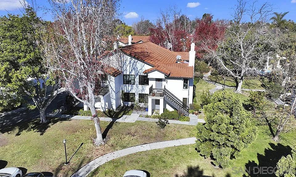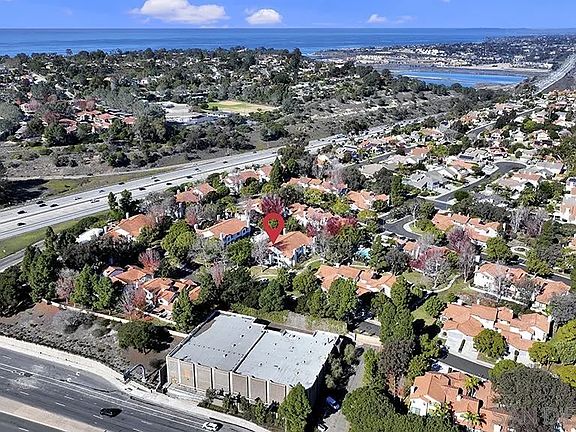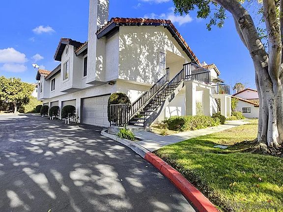 Upper level comfortable townhome in parklike East Bluff with beautiful trees and greenbelts. Kitchen has upgraded white kitchen cabinets, stainless steel appliances; Spacious main bedroom has ample closet storage & ensuite bath. Plantation shutters throughout; closet washer/dryer and two car garage; Community features resort like pool & spa area, and is close to award winning schools, shops, entertainment; five minutes from the Del Mar beaches and convenient freeway access.
