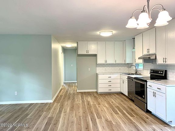 Move in ready. Remodeled single family brick home on 0.48 acres. This ranch style home features a delightful open floor plan. The kitchen includes hand-made wood kitchen cabinets, a beveled subway tile backsplash and new stainless-steel appliances. Enjoy the natural view from the dining area courtesy of the new low e French door. The home has heavy duty luxury plank flooring, fresh paint, and new light fixtures throughout. Attached storage room accessible from exterior under car port. 16.x 32 shed. The property also is home to several mature pecan trees and a fig tree.