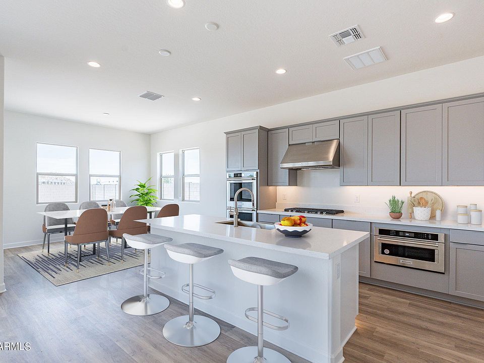 Modern luxury meets elegant design in this stunning quick move-in home. The open-concept kitchen provides connectivity to the main living area with prime access to the outdoor patio. The casual dining area is adjacent to the kitchen and provides a convenient and intimate setting. Create your ideal living space with a generous flex room located on the first floor as well as an upstairs loft. Highlights of this home include two-toned cabinets in the kitchen, beautiful quartz countertops, upgraded Kitchen Aid appliance package, under-cabinet lighting in the kitchen, an electric fireplace and so much more. Explore the possibilities in this mountain view home!
