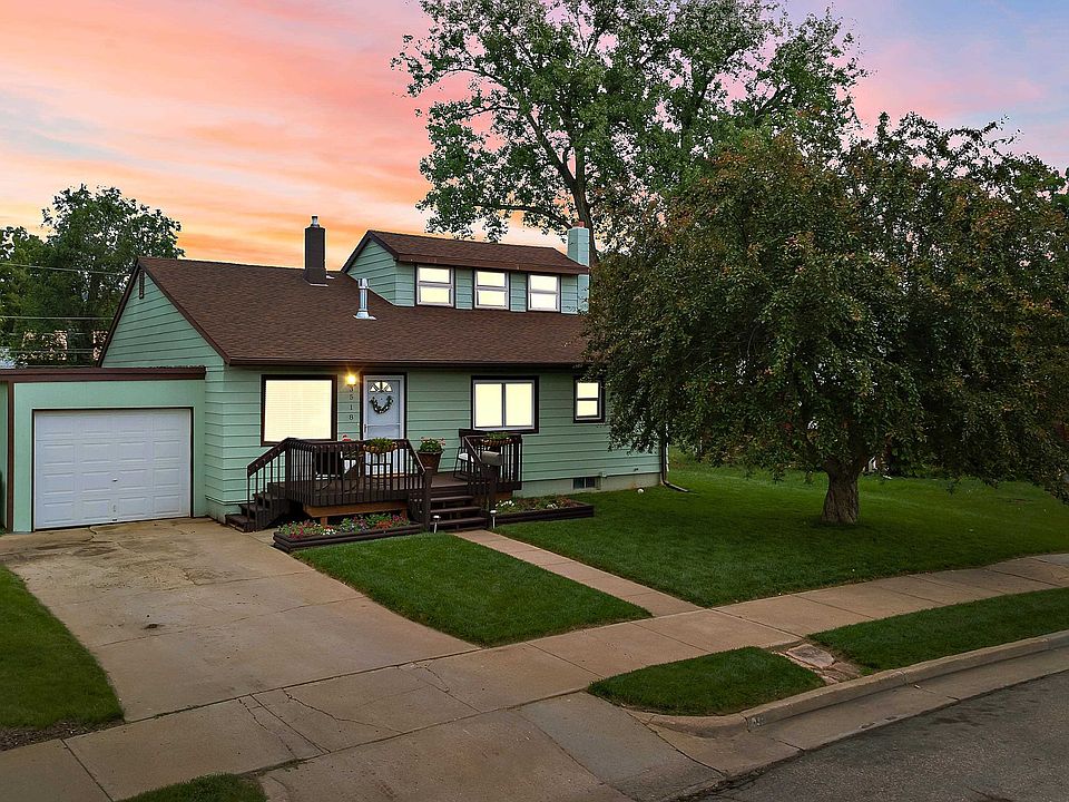 Listed by Sergio Colicheski at Black Hills SD Realty 605-381-5411. This adorable Westside home is a cant miss! As you walk in through the front door you will be greeted by the cozy living room which features a stone encompassed gas fireplace. This home has laminate flooring through out, with the original hardwood underneath. Continuing into the kitchen you will find stainless appliances surrounded by well maintained laminate counter tops. The kitchen has ample cabinet space and a nice island for additional counter space, and a spacious dining room. Walking into the main bedroom, you will find plenty of windows allowing for natural light, a loft area above, and an ensuite bath. Moving downstairs you will find a large family room with plenty of storage. Downstairs you will also find the large 4th bedroom which is equipped with its own en suite bathroom. The backyard is prefect for entertaining and comes with a fire pit and gardening areas for those with a green thumb.