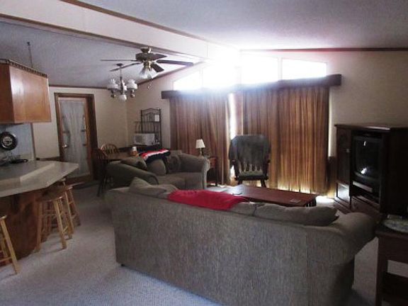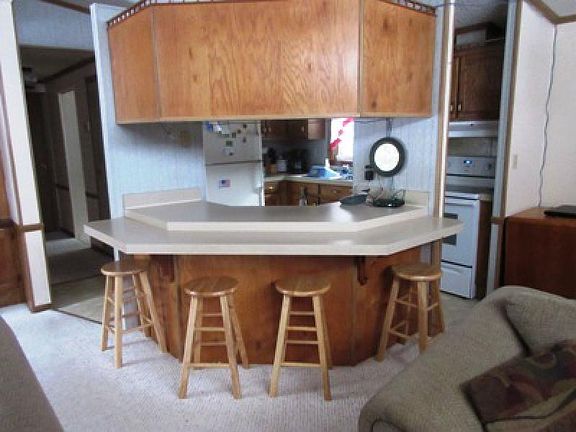 Year around 3 Bedroom lakefront home on Hunters Lake (no wake 42 acres)Extremely well maintained with ceiling fans in each room plus central air. The asking price includes an 18 ft. pontoon w/ 4 cycle outboard motor and approximately 40 feet of easy in easy out dock sections on an excellent fishing lake. Room sizes as follows: Bdrm1 16x14 knotty pine ceiling and wall, sliding window wall to lakeside deck, propane heater Bdrm2 two twin beds 11x9 Bdrm3 two sets of bunk-beds 10x11 Living, Dining, Kitchen open area with bar and bar stools Utility Rm 6x7 with stackable washer/dryer and exterior door to back deck. Move in ready. Most all furnishings will stay. A must see to be appreciated.