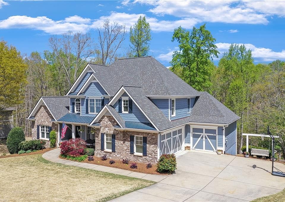 Welcome to 3518 Dockside Shores Drive, a stunning Craftsman style abode nestled within the serene gates of The Shores At Lynncliff on majestic Lake Lanier. This single-family residence boasts an impressive 1-acre creekside oasis and an expansive 5000 square feet of refined living space, including a finished terrace level. A beautiful brick front porch welcomes you into a world of luxury, where the charm of a cedar shake and metal accents complements the breathtaking 7 bedrooms and 5.5 baths. The home's elegance is amplified by the oversized master suite on the main floor, featuring a luxury spa bath with a 4x4 tiled shower and a dream-sized cabinetry closet system with center island and bench seating in front of the window. The heart of the home reveals a 2-story great room with a cozy fireplace and a wall of windows, offering tranquil wooded views. The southern-style keeping room flows seamlessly into a spacious breakfast area and a cook's paradise kitchen, equipped with a large pantry, coffee center, 5-burner gas cooktop, and double ovens. Entertain guests in the separate dining room or relax on the spacious shaded deck overlooking the serene back yard setting and even better with the evening setting of string lighting strown above. An open iron spindle staircase ascends to 3 additional bedrooms, one with private bath and large walk-in closet, the other two share a Jack and Jill bath and spacious closets. The finished terrace level features 3 more bedrooms, 2 full baths, a fully equipped second kitchen, an oversized rec room, and direct access to the lower deck. Abundant storage and a workshop area complete this level. The property includes a 728 square foot, 3-car garage with a double-sized driveway and new garage door opener, Landscaping is maintained with an inground sprinkler system, main level well equipped laundry room, and is adorned with gorgeous light fixtures, hardwood floors, tiled bathrooms, and premium cabinetry. The home has two fireplaces and the terrace level rec room is ready for a third fireplace if desired. Home is wired for a smart home and has an alarm system. Home was recently painted, decks are polymer composite, Newer efficient HVAC systems use natural gas and an 80 gallon gas water heater. New roof with CertainTeed architectural shingles crown this Whitmire signature home, ensuring timeless durability. For the discerning family or multi-generational living, this gated community doesn't just offer a home; it offers a lifestyle, with amenities such as a community dock, private boat and RV storage located next to Robinson Park boat ramp. Embrace the pinnacle of lake luxury at 3518 Dockside Shores Drive.