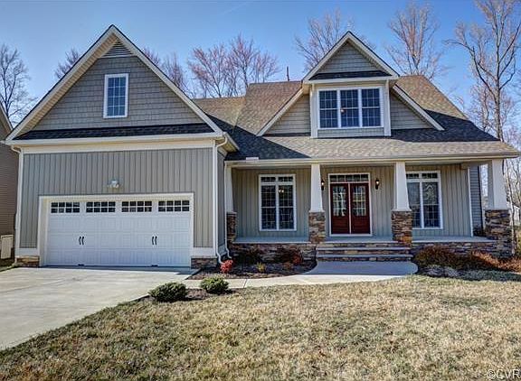 This craftsman style beauty has tapered columns that sit atop massive stacked stone piers, a wide county porch & dramatic red double door entryway that welcomes you into this home. With a large 1st floor Master Suite and a second level bedroom suite with 5 piece bath and two additional bedrooms upstairs this home will impress. Beautifully open to the kitchen, the vaulted family room has a unique cathedral design, wall of multi-pane windows & stacked stone gas fireplace flanked by built in bookcases. Upgraded high quality site finished ¾ inch hardwood flooring on the first level with bull nose corners available throughout this home . The kitchen boasts granite counter tops, a kitchen island, stainless steel appliances & gas Whirlpool Accu-bake 5 burner stove. With an elegant glass door pantry & extra large granite butler's pantry w/ built in desk and extra cabinetry, the details are exceptional.