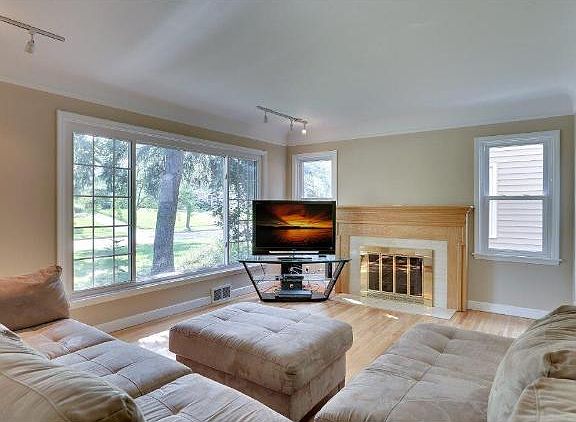 Minikahda Vista charmer that has been totally updated incl new windows. Main flr BR, HW flrs & fireplace in LR, orig tile in full BA & NEW kitchen. 2 BR's up incl mstr w/priv 3/4 BA. LL fam rm, sauna, laundry. Att gar, patio.