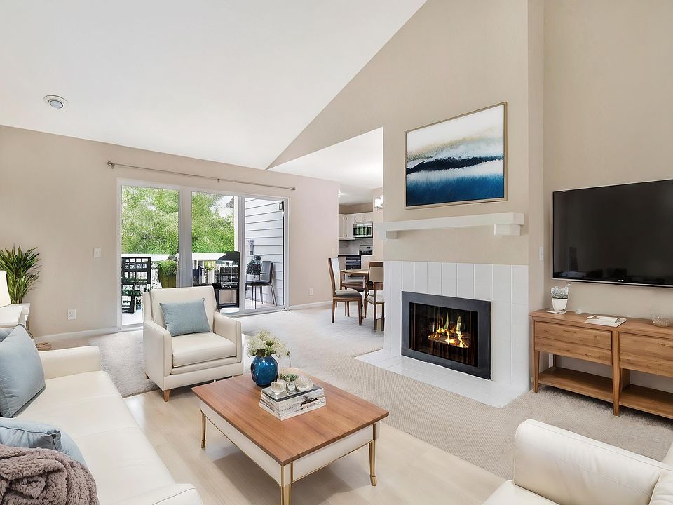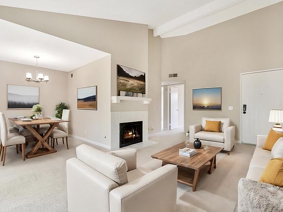 Tucked into the gated Meadowbrook community is a gorgeous penthouse condo loaded with upgrades! Luxurious vaulted ceilings & an open floor plan allow for a light and bright atmosphere! Beautifully remodeled kitchen has stone counters, tile backsplash, custom cabinets and stainless steel appliances including a gas stove & refrigerator. Spacious primary bedroom has 2 closets and an updated bathroom with a custom tile shower and a 2-sink vanity with stone counters. Additional features include central A/C, mirrored closet doors, a tile fireplace & new carpet! This unit also includes a relaxing patio overlooking the lush greenbelt, storage closet, 2 assigned underground parking spaces and convenient in-unit laundry with a full size washer & dryer. Wonderful gated community with huge greenbelts and 2 swimming pools with hot tubs! HOA fee includes water, hot water, central heating, trash pick-up, hazard insurance, exterior maintenance, roof, common area maintenance, swimming pools, hot tubs and security gates. Ideal commuter location close to freeways 880 & 680, Amtrak, ACE Train, Dumbarton & San Mateo Bridge, BART and Silicon Valley shuttle stops. Conveniently located close to shopping, restaurants, Alameda Creek & Trail, Quarry Lakes Regional Park, Lake Elizabeth and great schools!