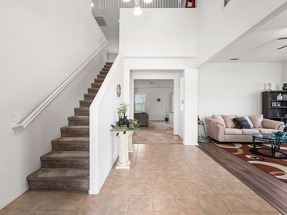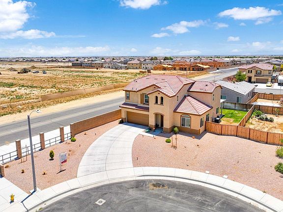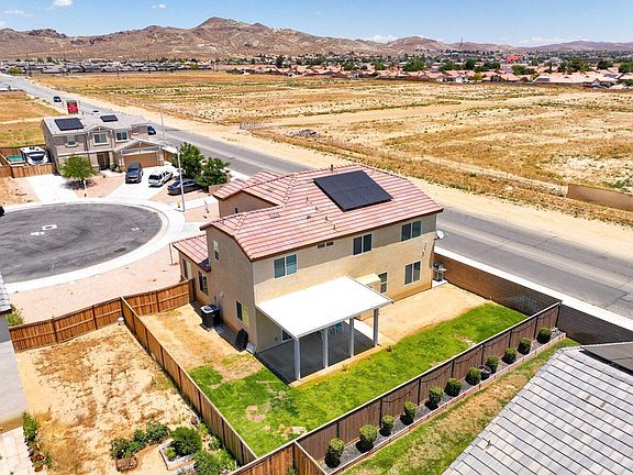 Situated on a serene cul-de-sac street in Rosamond, discover an exceptional two-story residence boasting an attached 2-car garage. This remarkable home presents a well-designed floorplan comprising 4 bedrooms, 2.5 bathrooms, and a generous living space measuring 2,583 square feet. Inside, the dwelling showcases an inviting ambiance with airy rooms, soaring ceilings, attractive tile and laminate flooring, ceiling fan/light fixtures, ample storage options, and various other desirable features. The formal living room and family room offer distinct areas, with the latter adorned with cozy carpet flooring and a charming fireplace. Adjacent to the family room, you'll find a fully-equipped kitchen complete with elegant granite countertops, high-quality appliances, and a convenient center island featuring a sink—perfect for accommodating bar stools. The kitchen also encompasses a cozy dining area and a sliding door that leads to the covered patio, allowing for seamless indoor-outdoor transitions. Adding convenience, the first floor includes a guest bathroom. Venturing to the second floor, you'll encounter an office area, a laundry room, four bedrooms, and two additional bathrooms. The primary bedroom stands out with its private en-suite bathroom, featuring a double sink, a soothing soaking tub, and a separate shower. Outside, revel in the pleasant climate as you relax in the expansive, secluded backyard, replete with a lush green lawn, a side yard, and a covered patio that invites outdoor seating arrangements. Notably, the property boasts solar panels, enhancing energy efficiency. The sizable lot spans 6,969 square feet, with the low-maintenance front yard offering ample space and a lengthy driveway capable of accommodating an RV or up to four vehicles. The home's location is highly desirable, with proximity to markets, schools, dining establishments, and other conveniences.