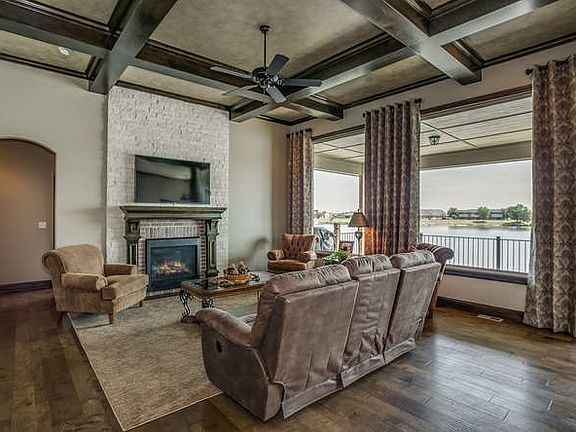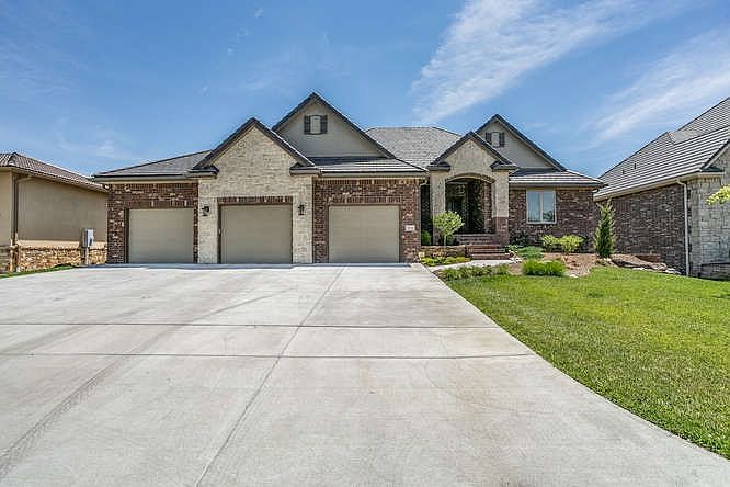Gorgeous full brick home with tile roof located in a private gated community. Breathtaking water views, with direct access to the private lake for boating and fishing! Gourmet kitchen with oversized island and large walk in pantry. Large main floor living room with large windows and 11 foot beamed ceiling, hardwood floors that carry throughout the main floor living space. Main floor includes a half bathroom, drop zone, and built in desk/ office. Gorgeous master suite with large walk in shower. Walk out basement with an oversized family room that is ideal for entertaining! Custom oversized wet bar. Separate office area off the back of the garage, and a loft for additional storage space. This home has all the bells and whistles! Located in the desirable Maize School District, just one mile from 96 HWY.