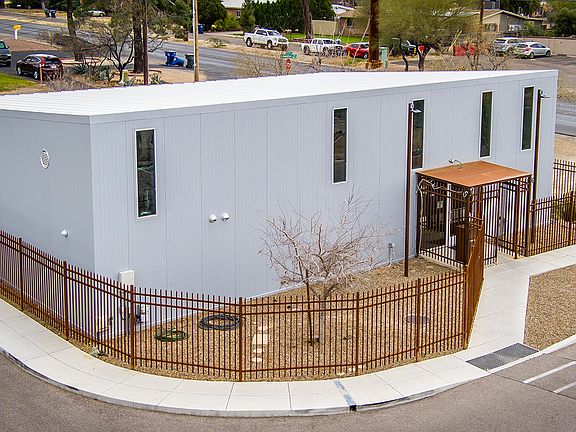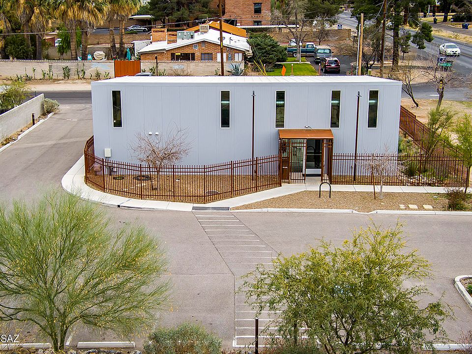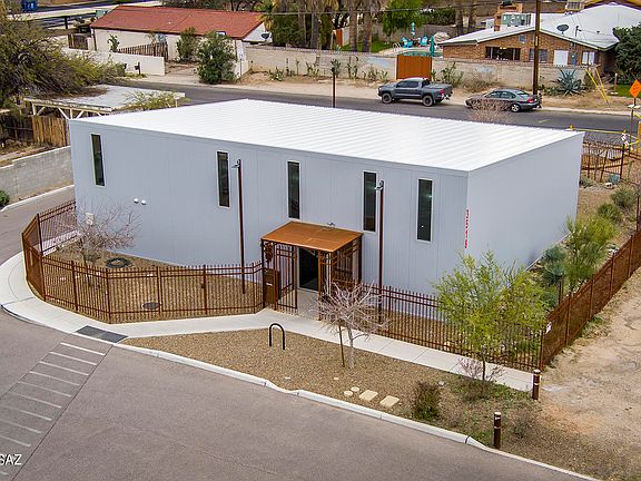 You won't find a building like it in Tucson...Efficient and low lifetime maintenance...Designed by renowned architect Rob Paulus, this property is truly one of a kind. It was built for a commercial retail space, but the zoning allows for many options. With some modifications you could make it into a very unique live/work space. Or further the modifications and make into a full residence. In this ever changing world this property's unique qualities might be just what you're looking for. With its propane powered backup generator, the concrete cast 2500 gallon underground water collection, and super insulated all-weather metal panelized wall and roof system, you're set for almost anything that comes your way. Currently the property does not have a kitchen, full bath or designated bedroom.