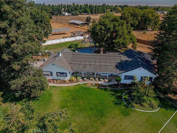 Welcome to this exquisite home set on 1.6 acres! This property features a three-car garage with built-ins and a storage closet. Inside, you’ll find an open floor plan with vaulted beamed ceilings and a cozy wood burning fireplace. The home is illuminated with recessed lighting and includes a step-down spacious living area to relax and enjoy family time. There are 3 spacious bedrooms, with custom closet built-ins for ample storage. Stay comfortable year-round with a whole house fan and enjoy the energy efficiency from the 80-panel, fully paid solar system. Additional amenities include space for a possible greenhouse, a complete RV hookup and the benefits of a refreshing pool. Enjoy being on the verge of country living, but also close to shopping, and entertainment! This home truly is everything you need for comfortable and sustainable living!