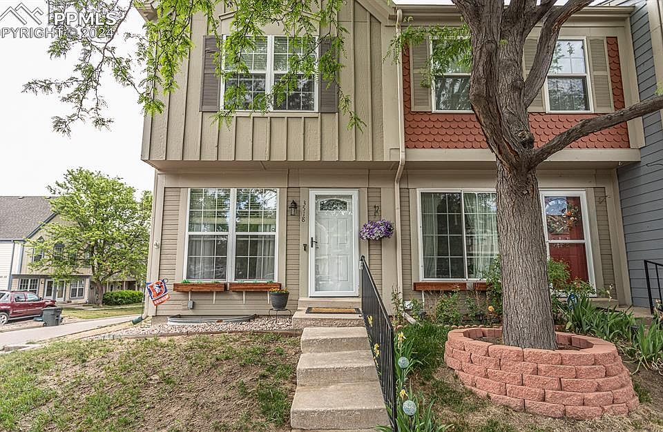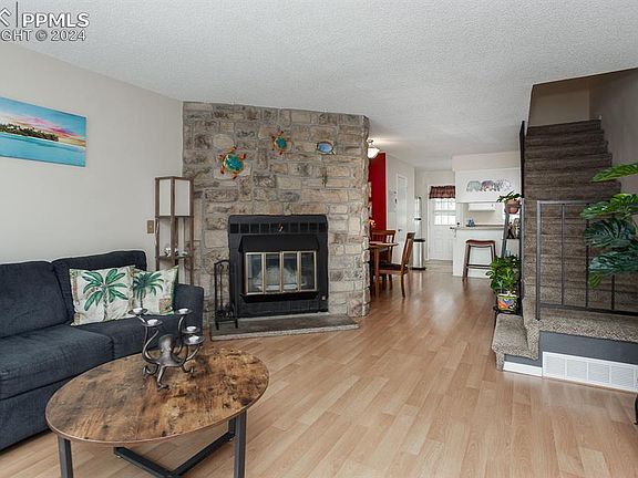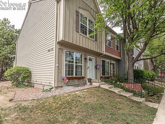 Discover this adorable and meticulously cared-for townhome, brimming with personality and charm! As an end unit, it offers extra privacy and abundant natural light. The main level features a gourmet kitchen equipped with stainless steel appliances that opens to a beautiful Trex deck, perfect for cozy moments or entertaining guests. The main level also includes a quaint dining area and a spacious living room with a wood-burning fireplace, along with a stylish half-bath for guests. Upstairs, the large primary bedroom boasts vaulted ceilings, his and hers closets, and ample natural light, along with a full bath. The additional secondary bedroom offers plenty of space and comfort. The versatile finished basement can serve as a third bedroom, a flex space, or a home office, and includes a full bathroom and a dedicated laundry area. Enjoy the community amenities, including a swimming pool and scenic walking/biking trails. Situated next to Palmer Park in central Colorado Springs, this home offers convenient access to outdoor activities and local amenities. This delightful townhome is a must-see in person. Come and experience its warmth and charm for yourself!