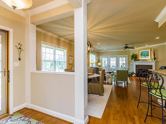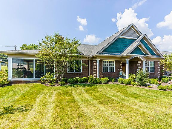 Ranch style all one floor! Wonderful open floor plan featuring Great room, Dining area, spacious Kitchen with breakfast bar. Hardwood throughout, tiled baths, updated lighting, fireplace. Kitchen features white cabinetry, granite counters and loads of counter space and cabinets. Split bedroom design, and large primary suite. Primary bath has double bowl vanities with granite, separate walk in tiled shower and tub, and generously sized walk in closet. Current owner has replaced dishwasher and refrigerator. Large enclosed three season screened porch with roll up shades. Clubhouse has workout room and pool is heated.