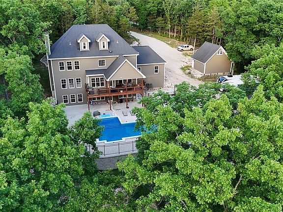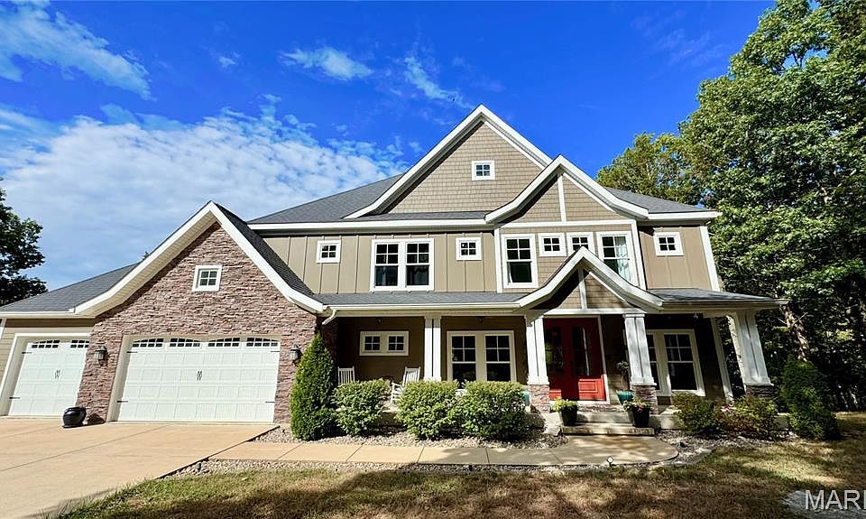 This custom-built Craftsman-style home sits on 3.5 acres of scenic land just 35 minutes from downtown St. Louis. Offering 5 bedrooms, 5 full bathrooms, and over 6,000 sq. ft. across four levels, this property combines luxury, efficiency, and modern technology in a peaceful country setting. Gourmet kitchen with 5-burner gas cooktop, LG double ovens, oversized 9’x5’ island, granite countertops, soft-close cabinetry & walk-in pantry Luxury master suite with Jacuzzi tub & walk-in shower with dual shower heads 3 family rooms, 2 offices, sunroom/craft room Unfinished bunker theatre room & vault 3-car attached garage plus 24x24 2-car detached garage with loft office RV parking with 50/30/20 amp hookups, accommodates up to 40’ RV Upgrades & Systems James Hardie siding & Marvin wood windows/doors 9’ ceilings on main levels, 8’ in attic Geothermal HVAC (3 zones), 400-amp electrical, pre-wired for Generac generator Lower level pre-plumbed for radiant floor heating system Whole-home intercom, 6-zone audio, Cat-6 wiring, hardwired security with cameras & driveway sensors Z-Wave smart switches throughout 1st–3rd floors Marathon 85-gallon water heater, commercial-grade softener/filtration, R/O system Outdoor Living 30,000-gallon concrete ICF saltwater pool with advanced filtration, lighting & auto top-off Large partially covered deck overlooking pool Trails, creek, sheds, garden with chicken coop/run. A Craftsman home with modern systems, private acreage, and resort-style amenities.