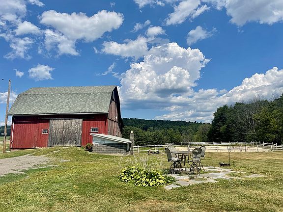 HORSE LOVERS- an AFFORDABLE FARMETTE FOR YOU! 3 bed, 1 bath fully insulated farmhouse on over 6 1/2 acres! Property includes a 1800 sq ft usable barn that has 6 stalls, water & electric, a tack room & a hayloft. 3+ acres of fenced in pasture + a 80x140 sand riding arena. Large parking area for equipment. Patio area to enjoy the horses graze amongst the mountain views. Sit on the covered porch, looking over the tree lined yard. Country kitchen w plenty of space, laundry was conveniently moved to the 1st fl, fully remodeled bathroom, hardwood floors in the dining room that continue on through the glass doors to the living room. 3 bedrooms & storage space will be found on the 2nd floor, and then the bonus finished attic makes a great toy room or family room. Home has been re-wired, insulated, sheet rock installed, many new windows , a natural gas furnace & roof within last 5 years. Public sewer, high speed internet, plus close to stores. LIFE IS BETTER ON THE FARM! Stop by today!