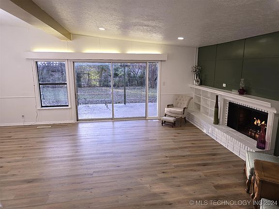 This mid-century modern home sits on a large lot with mature trees. The recently renovated home offers, butcher block countertops, inside laundry, open dining/living area with a fireplace. Two of the large bedrooms have private baths! Fresh paint, new flooring throughout the home with cathedral ceilings in the living area. Two of the bathrooms have the original yellow tile and the bathtubs have all been reglazed. A new shower has been installed in the 3rd bathroom which also features 2 walk-in closets. Owner/Agent.