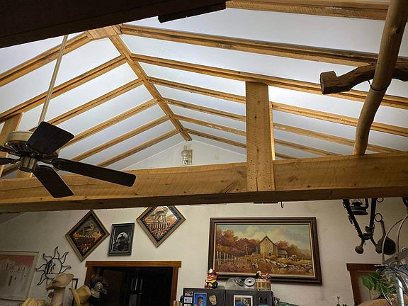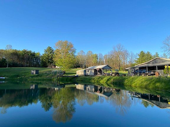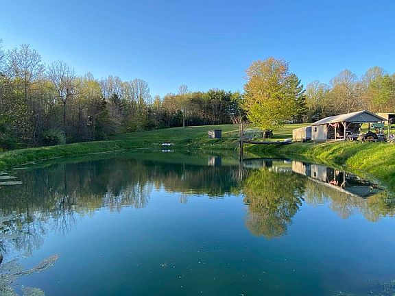 Well built 2 bedroom 2.5 bath 2 car attached garage on 3.5 acres with a fully stocked spring fed pond! Enjoy the great outdoors from the front porch or do a little fishing from the pond! This home offers plenty of rustic Brown County charm situated on 3.68 acres of open grassy land, just the right amount for a mini farm, your gardening needs or outdoor entertaining. Home is connected to a well, but Brown County Water is at the road. Great room with cathedral ceiling hardwood beams, beautifully crafted hardwood trim, solid oak kitchen cabinets, master bedroom with bath, guest room, laundry and an office, all on one level! Guest cottage located next to pond, perfect for overnight guests! 27'x35' attached garage with bathroom!