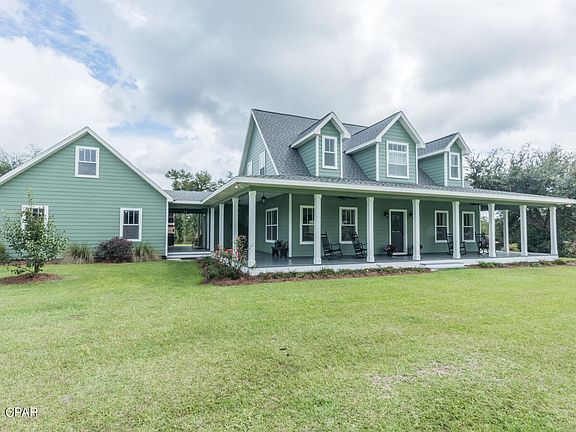 This is the perfect ''storybook'' home that you've been waiting for! Perfectly maintained 3 bedroom/2.5 bath custom home on 20 acres with a 4-stall horse barn, hay barn, workshop, pole barn, and access to fishing, kayaking or paddleboarding to Deer Point Lake. The home has all the upgrades you could ever want, including wraparound porch, new dual HVACs, new roof (2019), gorgeous hardwood floors, custom cabinets and countertops, oversized garage, and so much more! Heavy duty vinyl horse fence surrounds the pasture, paddocks and lighted arena. The horse barn also has many upgrades, including insulated roof and walls, rubber StableComfort floors, and a beautiful tack room with kitchenette. Flood zone X = flood insurance not required. Just 14 miles to the airport and 20 miles to the beach.