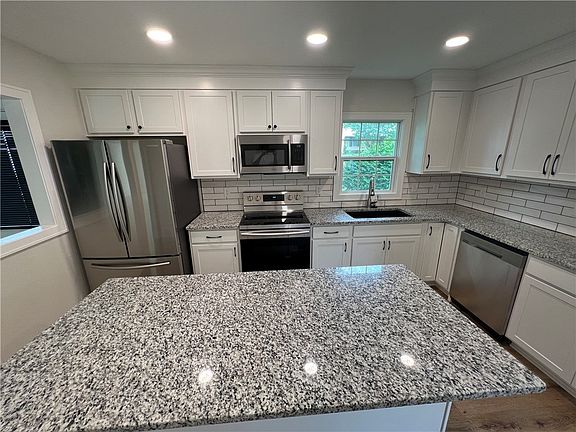 Completely remodeled in 2020. 2 bedroom, 1 bathroom, 2 car garage. New LVP flooring, cabinets, counters, appliances, fixtures, deck, lighting, entertainment center. Move right in and no need to do any work. Enjoy the fully fenced back yard and mature trees on your new deck. All remodeling professionally done. Schedule your showing today. All information obtained from seller and public records.