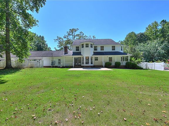 Most people can only dream about a palatial place like this on 5 acres with all the southern charm one can imagine. Just driving in on the circular driveway rounding a beautiful pond and a landscape that is to die for. As you look closer at this property you see a Southern style home with with wrap around porches that face the pond and covered back porches that overlook the private back yard. This home has a 3 bay carport as well as a two car garage. Upon closer inspection one notices a gorgeous salt water pool with separate pool house with full bath and sauna; a pole barn with 3 bays to accommodate a camper/ATV, and an additional workshop with garage door and spacious fenced area for dogs. Moving into the main level on finds a guest bedroom and bath; living room; formal dining room; keeping room and bonus room. The master bedroom is huge with recessed lighting, extra windows, sitting area, walk in closet, private bath, step in shower, jetted tub, double sink vanity & toilet closet. There are additional bedrooms on the second level all with vaulted ceilings providing great light. Stepping into the kitchen one will be awed: sit down bar, roomy pantry , serving bar, window over the sink, breakfast nook, keeping room and all stainless appliances. Laundry room plumbed for a sink and has a laundry chute from the second floor. This home is blessed with tons of storage. Two new HVAC units, new water heater, roof replaced in 2010. This place is to die for; take a look.
