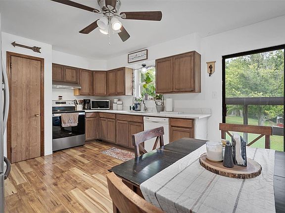 Full brick, 3 bed, 3 bath ranch home with 1800sqft on almost 2 acres on a cul-de-sac! This property features a barn, chicken coop and tool workshop with electric. The home is open with living room, updated kitchen with maple cabinetry, quartz counters, updated appliances, wood lvp floor, pantry, breakfast room/eat-in with sliding door. The master has a large closet and en suite updated bath with shower. The 2 bedrooms and updated full bath round out the main level. The partially finished walk out lower level has a large family room with wood burning fireplace, sliding door to concrete patio, full bath, laundry room and extra bonus room or storage. There is a 2 car garage that completes this property. The deck was recently removed. The property is wooded, sloped and private. Perfect spaces for gardens, family fun and animals. Professional photos avail 8/8, showings start 8/8. Lots of potential to put your own stamp on this property.