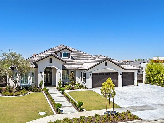 Stunning French Country home in the private gated community of Belcourt Gallery Seven Oaks! Per laser walk in pics, 4245 sq ft. Built in 2023, this home boasts a luxurious, modern decor. From the color palette to the spectacular fixtures, wood beam ceilings and tile/flooring choices, the attention to detail and refined taste will not disappoint. Stepping through the gorgeous entryway, you will find a spacious 4 bed/4.5 bath floor plan including an office, dining room w/wainscot, large central kitchen w/island and wine fridge and an amazing game room with full wet bar. Other features include LVP flooring, quartz countertops, 3 fireplaces, primary suite w/spa-like primary bath, four panel sliding glass door opening up to a large patio/backyard, central vac, a solar PPA with 2 Tesla Powerwalls, EV charger and much more. The community features a clubhouse, tennis courts, gym, pool and parks and is located close to some of the best schools, shopping and restaurants in Bakersfield.