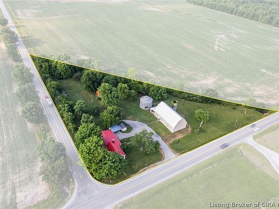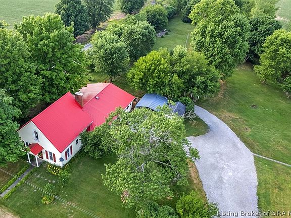 Great LIFESTYLE! 3 ACRES! Conveniently located to HARDY LAKE and 4 miles to I65. Fish in your own pond! FABULOUS FARMHOUSE 1.5 story, 3BR, 2.5BA from the 1900's has been updated but kept the charm and character. The main level has great eat-in kitchen with beautiful wood laminate flooring, lots of cabinets, plentiful counter space, a full complement of appliances plus a two-sided fireplace that opens into both the kitchen and formal dining room. The main floor also includes a large family room, huge 13x27 living room, shiplap walls, wrapped beams, wood flooring and a 10x12 reading nook, plus a 32x7 enclosed side porch. Large first floor master suite has a window seat in the bay window, tin ceiling, hardwood flooring, shower, vanity and walk-in closet. There is also a main floor laundry room and full bath. Bedrooms upstairs are spacious with large closets and a Jack-and-Jill full bath opening onto both bedrooms. Extra large original barn, rebuilt in 2014, with concrete floors, 200 amp. HOME OFFICE ALERT! Barn includes a fully-finished and insulated two room suite with a half bath and kitchenette, wired and ready for office or guests. The barn has lots of open storage, two garage doors and features a 70x36 second floor with a 20 ft vaulted ceiling creating a large voluminous area to enjoy 20ft x 30ft big screen movies when set up. Attached lean-to (w/electric), 2 carports (1 for RV w/200 amp), grain bin and "she" shed (w/electric).