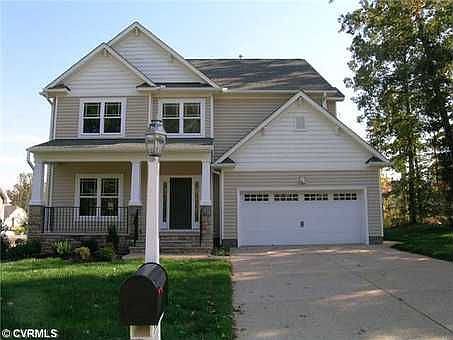 Top location in Chesterfield for this new home Craftsman style. Stone accents and details add to the charm of this home. Large open formal area for entertaining, kitchen with stainless steel appliances and granite opens to large family room with gas f/p and door to large deck. The 2nd floor has a large master bedroom with trey ceiling, two walk in closets and bath with double vanity and soak tub and separate room with tile shower and toilet plus large linen closet. Baths have tile floor along with utility room. Nice size bedrooms all have double closets. 9' ceiling on first floor, 2 zone heating, cul de sac street makes less traffic, and sod on yard. Front porch and aggregate driveway. Easy access to most anywhere! Ready now!