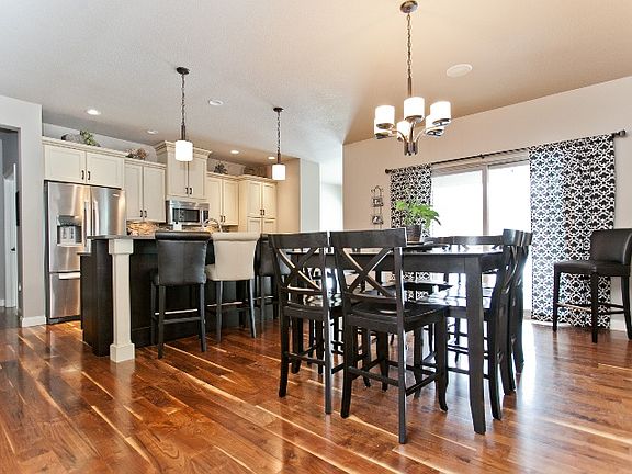 This 5-bedroom, 3-bath ranch home in the desirable Pines at Turtle Creek neighborhood is a must see! Open concept layout with 9 ft. ceilings, in-home stereo system, central vac (including 2 vac pans) and upgraded finishes throughout. Spacious kitchen with stainless steel appliances, gas stove, double oven, oversized pantry and wide, dark-stained maple flooring. Main floor laundry room/mud room, with 5 lockers and additional custom-built shoe storage. Master bedroom with large south-sided windows and walk-in closet. Master bathroom with double-sink vanity and extra-large tile shower with side jets. Lower level includes two spacious bedrooms (one with walk-in closet), full bathroom with double-sink vanity, wet bar with granite countertop, living room with gas fireplace and additional laundry hookups in utility room. Covered porch with maintenance-free flooring/railings, ceiling fan and TV hookup. Large yard and underground sprinkler system. Call for a showing!