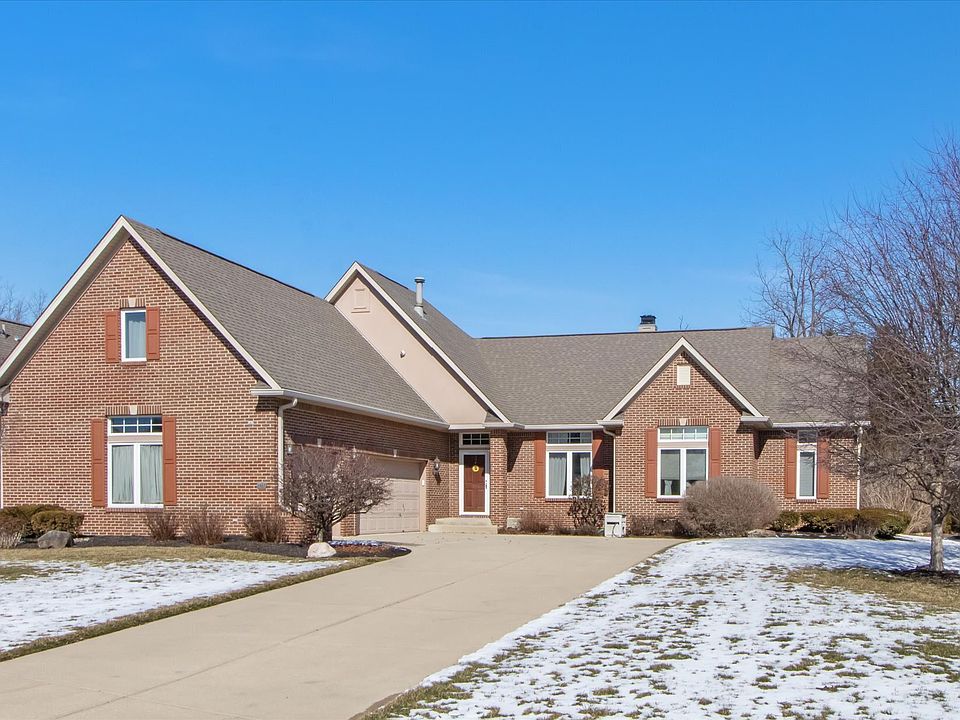 Immaculate low maintenance brick home in popular Shelborne Greene! Many updates including water softener, gas fireplace, Andersen windows, HVAC for both floors, and roof! Engineered hardwood floors throughout most of main floor. Kitchen features white quartz countertops, Bosch and Jenn-Air stainless appliances including gas cooktop and double ovens, and a center island. Main floor primary bedroom has two walk in closets. Second bedroom on main floor plus den/library. Spacious third bedroom and full bath upstairs with skylight at top of stairs. Three car garage. Invisible fence and irrigation system. Private back yard with custom paver patio and tree line at rear!