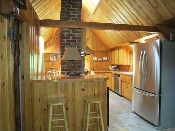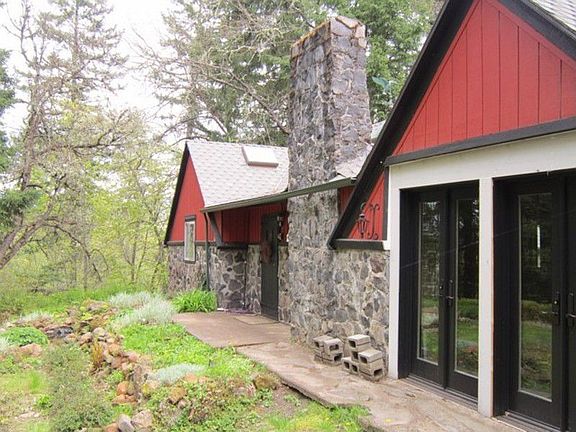 Quaint 1932 Cottage lovingly maintained over the years. Stone & wood exterior, hand hewn doors with leaded glass inserts, tongue & groove wood interior, vaulted ceilings, copper fireplace & stove hood(s) & so much more. Attached barn was replaced with a gathering/family room over guest quarters. Private 10 acre retreat has pond, trails & Odell Creek crossing the property.