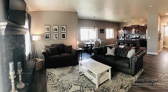 Imagine life in the High Desert! Come home to an impressive two-story entryway and airy great room in desired Mirada! Entertain around a large quartz kitchen island flanked by a dining nook and upgraded kitchen. This fantastic family friendly floor plan boasts ample bright, airy windows and an inviting stone surround fireplace. Your master suite offers French entry doors, tray ceiling with fan and large walk-in closet. This home sits only one lot away from the private community pool & close to the 4-acre park! Relax outside under the covered backyard patio or watch the stars from the yard. High end finishes, beautiful decor, and gorgeous landscaping round out this fabulous home! Don't miss this opportunity to own in NE Bend close to trails, parks, and great schools. Home is still under warranty.