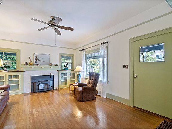 Old-PDX Foursquare with original 1925 charm intact on calm cul de sac. High ceilings, built-in cabinets, oak floors, natural wood trim and clear-grain fir floors upstairs. Brand new Hi-E gas furnace, A/C. 2015 tear-off roof, gutters, chimney tuck-pointed, EPA-cert wood stove. Huge wrap-around front porch. Parking for 4 cars, 2 driveways. Plum and apple trees, shed, spacious patio, swing set and hammock in fenced backyard. Don't wait!