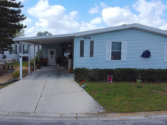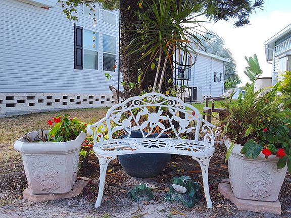 WOW..... come take a look at this gorgeous waterfront home! Super clean and very well-maintained. This home will not last long it is the reversed layout that is so desirable. This home features a side driveway carport with a storage shed and a beautiful brand new large screen lanai with a ceiling fan. The shed is large enough for all of your storage and all of your beach gear and then some. The side screen lanai is large and opens making it a perfect area to feel relaxed and feel the Florida breeze. Stepping inside the home you enter into the mudroom area with built-in cabinets for storage a folding table area and of course the washer and dryer. As you enter the home to the left is a wide-open floor plan with your living room dining room and kitchen area. These rooms are wonderful for entertaining. Everyone loves this open concept feel. The dining area has a large built-in hutch giving you extra storage and a spot to showcase your Decor. In the back of the house again the wide-open concept is an extended Florida room with gorgeous tile floors. This room could be used as a second living area entertaining your friends and family while overlooking the lake. A very large master bedroom en suite with a large walk-in closet a deep garden tub with a step-in shower and double sink vanity. The guest bedroom also is spacious easily houses a queen-size bed. All listing information is deemed reliable but not guaranteed and should be independently verified through personal inspection by appropriate professionals. Integrity Mobile Home Sales cannot guarantee or warrant the accuracy of this information, measurements, or condition of any property. Measurements are approximate. Lot rent is subject to change.