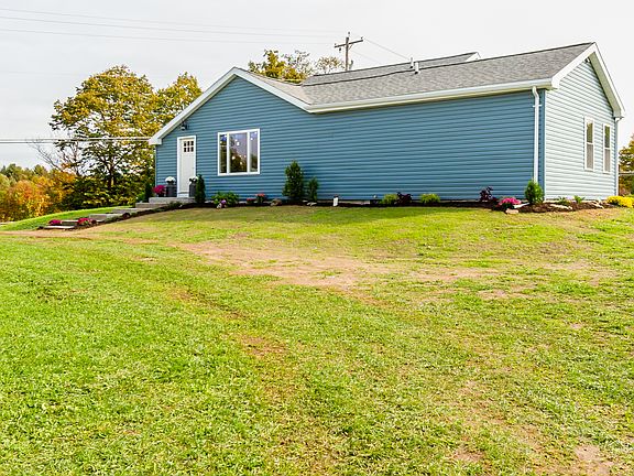 Completely renovated inside and out!!! All new appliances. New kitchen, bathrooms, roof, siding, windows, electrical, heating, AC, and plumbing. HUGE closets! First floor master bedroom and laundry. Nearly 9 acre farmette. Previously used for horses. Plenty of acreage for farm animals. Picture window in living room views beautiful sunsets. 1.5 Miles from shopping area and around 2.5 Miles from I-81. Bonus! Large barns on property that need work but have a lot of potential.