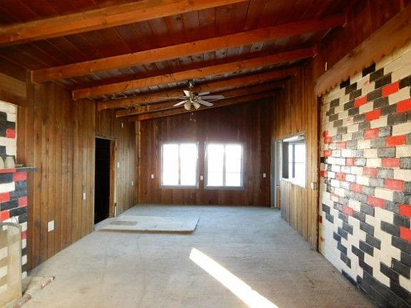 Rustic cabin style home in the Grandview area, just outside of Barstow. Attractive wood beam ceilings in living room and bedrooms. Living room has cathedral Ceiling and fire place. Home currently has 2 bedrooms but per property profile used to have 4 bedrooms. It appears that there have been some additions and alterations over the years. Large .45 acre lot has lots of potential, with separate fenced areas for storage and/or pets. Fenced area at far back is currently rented to a contractor for $325 per month. He uses it for work & storage and has a motor home on the property in which he sometimes stays. Large storage shed/work shop included. Home needs work and is being sold in existing condition. All inspections will be at buyer's expense.