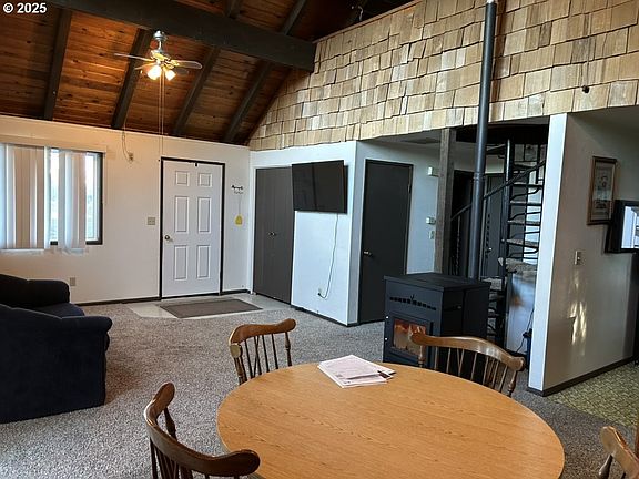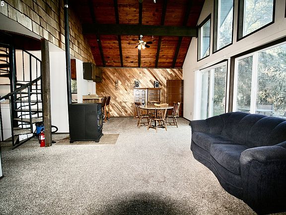 - Features: Ceiling Fan, Living Room Dining Room Combo, Pellet Stove, High Ceilings, Vaulted Ceiling, Wallto Wall Carpet