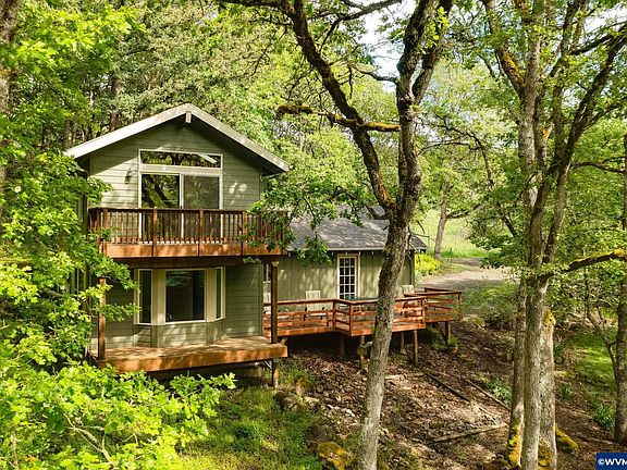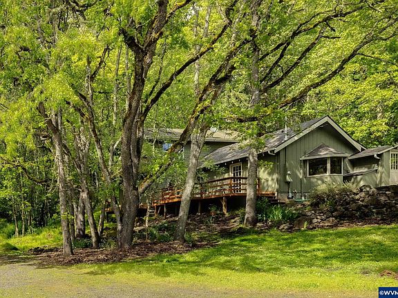Indulge in the serene spectacle of the sunset painting the sky behind the majestic silhouette of Mary's Peak, all from the comfort of your own secluded sanctuary. Nestled on 2.71 acres of pristine land, this property boasts an impeccably updated home, two charming outbuildings, a spacious shop, and a rustic barn. Meandering pathways wind through the grounds, guiding you to discover the enchantment of a seasonal creek. Whether you crave tranquility or seek solitude, this property offers a blend of both.