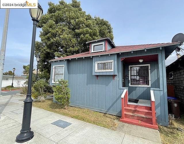Good circa 1906 single family home across the street from the Richmond BART station. 622 sq ft on a corner fenced 1500 sq ft lot. NO HOA!! 1 bedroom, 1 bath. Wall to wall carpets. Refrigerator, stove stay with the property. Pantry, eat in kitchen area. High walk score. Perfect for an individual, a couple or perhaps a small family.