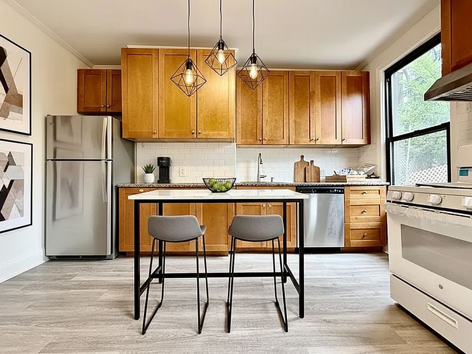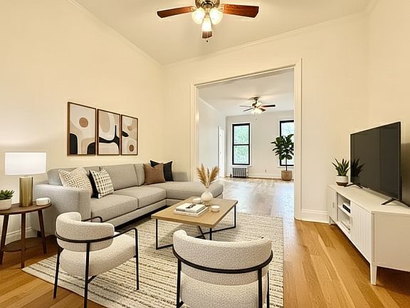 *Please watch/request a video of the unit for a virtual tour!* This is a sunny entire top floor 2 Bedroom with a full bathroom apartment in a well maintained 2 Family House on a quiet tree-lined residential block. High ceilings with crown moldings and full sized windows in every living space and bedrooms. A large walk-in double door closet. Dining room. Spacious living room for relaxation. Hardwood floors throughout. Ceiling fans and lights. Newly refurbished with new and updated appliances in a large eat-in kitchen. This is a non-smoking apartment and no pets policy. Private entrance and interior staircase not shared by others. E-bikes and lithium battery charging are not permitted