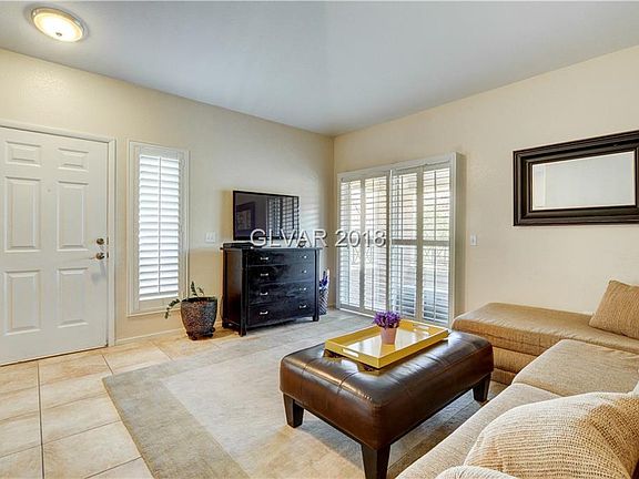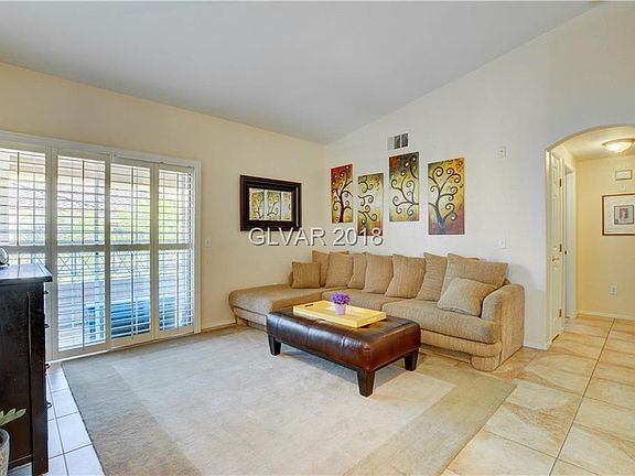 Charming, beautifully maintained gated Summerlin condo with updated Kitchen - granite, farm sink, new built-in microwave to allow for more counter space. Newer Refrigerator. *Shutters throughout* Vaulted ceilings to give a spacious feeling. Fan lights in bedrooms. Location, location, location.......check out the amenities nearby, shopping, restaurants, entertainment. Zoned for top rated schools. Don't miss this one!