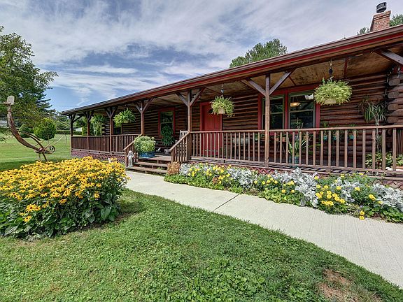 CHARMING, BRIGHT AND INVITING RENOVATED LOG HOME ON 2.14 ACRES. ONE LEVEL LIVING WITH OPEN SPACE & CURB APPEAL! CENTRALLY LOCATED IN BEAUTIFUL BERKSHIRE COUNTY.! Lovely open floor plan, spacious kitchen w/large center island. The Master Suite offers a spacious bedroom w/maple flooring and attached bath w/granite vanity & laundry. Beautiful guest bath w/quartz vanity & tile flooring. The lower levels offers a family room with T&G pine ceiling with recessed lighting, a finished bonus room & storage galore.! Enjoy the relaxation of the large front porch that begs for the placement of rocking chairs.!! The newly installed back patio is perfect for cookouts and happy hours with a retractable awning to supply shade on hot sunny days. Drip line watering system for plants!
