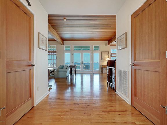 Mantoloking Shores Custom Bay Front Beauty- Four bedroom, four full bath Custom built Colonial on pilings. Quiet cul-de-sac. Open floor plan with wood floors throughout, planked and beamed wood ceiling. Great for entertaining family and friends. Kitchen boasts enormous center island with seating and gas fireplace. French doors and large windows showcase the breathtaking views of the Bay from every level. Third floor offers balcony with bay front views, loft area with full bath and over sized attic space. Plenty of storage. Relax on porch, in salt water in-ground pool, and enjoy jet skis and boating off the large dock and bulkhead. The best of the Bay and blocks to the Beach. Low maintenance outside with outdoor shower. Outstanding sunset views to see daily or enjoy as a weekend get-away!