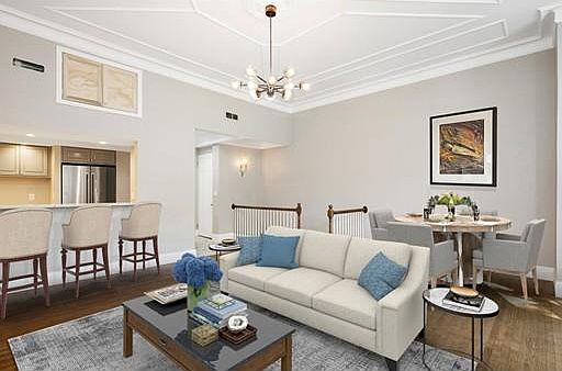 Stunning Renovation of this parlor level beauty. 2++ bedroom w/parking on waterside Beacon is available for immediate occupancy and may also be rented furnished. The common areas of the building are sophisticated & beautifully decorated, which include an elevator. Open kitchen design adjacent to living area & designated dining nook. Glamorous chandelier and sconces, custom touches to include master bath with double sinks, Walk in marble shower w/ glass surround. Huge custom fitted walk in closet, recessed lighting galore, full off street parking (SUV will not fit). Traditional grand parlor detail, original hardwood floors, brand new heating and central air conditioning. Laundry in a separate closet outside of bedrooms & storage like you don't get in a home of its 1600 sq. foot size. Built in desk area, as well as additional nursery area or media room. Powder room services parlor level and guest bath is new and modern. The home also comes with common roof deck overlooking the Charles.