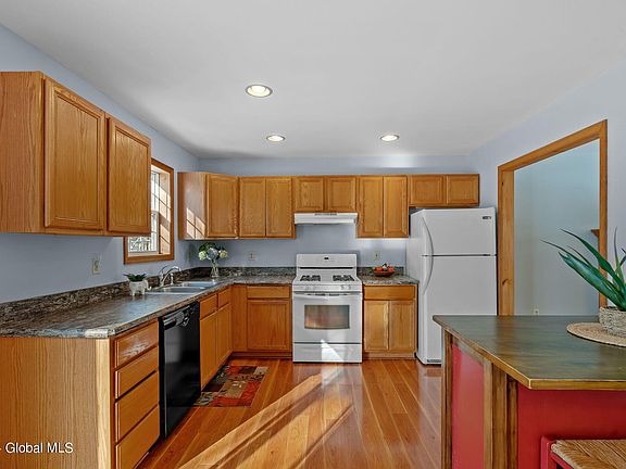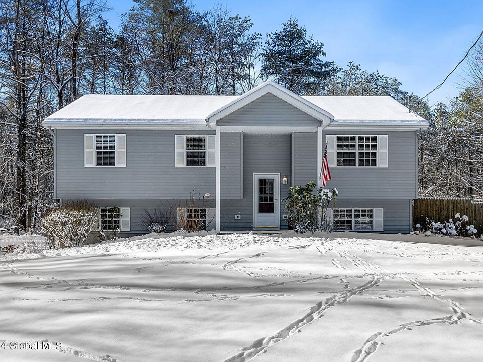 Welcome home to this beautiful 4 bed 3 full bath home on nearly 3 acres! Stay warm & cozy enjoying the ambiance of the gas fireplace. Rarely do you find a full bath on each living level PLUS a primary suite! This home has it all. Not to mention a 2 car garage with storage. Large, dine-in kitchen (w gas stove) opens up to beautiful sliding glass doors & 2 tier deck! Perfect for hosting! Large yard, complete with a pool, pond, garden and invisible dog fence! Pool deck patio set included! Easily add 1st lvl in-law suite. Enjoy not only a lovingly maintain home/ property, but also a fantastic location. Minutes to I 87 and so much fun! Find yourself enjoying Saratoga, Lake George, Hudson River Park/Boat Launch (walk to) & West Mountain being that you are so close to it all! Gen. hkup.