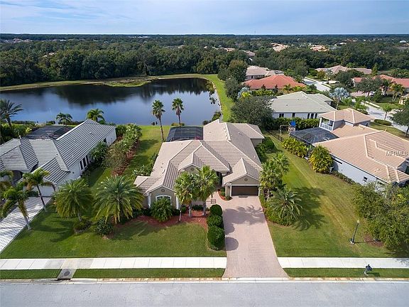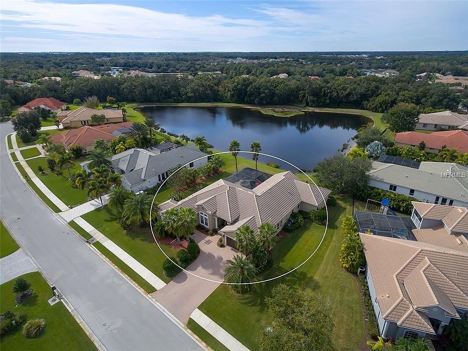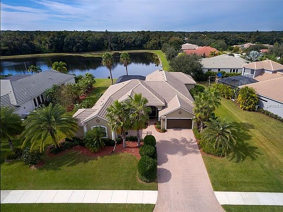 PREPARE to fall in LOVE with the outstanding sunsets & serene lake views from this spectacular home! Built by Sam Rodgers, to the highest standards, this home is on one of the best lots in GreyHawk Landing. As you enter the large foyer through the double front doors you feel a sense of luxury. With 4 large bedrooms, a den, 4 full baths, and a large bonus or man cave, all on one floor, this home is so spacious. The house centers around a saltwater pool and lanai overlooking a large lake with a forested preserve in the distance. The gourmet kitchen features a breakfast bar where stools can cozy up, 48" wood cabinets, granite countertops, tumbled stone backsplash, newer Bosch dishwasher, LG refrigerator, and gas stove. The living room has tile floors, high ceilings and crown molding. The elegant, master suite features a large window and doorwall with views of the pool, his and her walk-in closets and a luxurious master bath with dual sinks, garden tub and a walk-in shower. The exterior of this home was recently painted and has 3 garage bays with tons of storage. There are 2 newer A/C units. Greyhawk Landing is a gated community with 2 resort style pools, tennis courts, fitness center, playground, basketball, softball, and soccer fields plus walking trails and a fishing pier. Known for large lots and abundant, mature trees Greyhawk Landing has so much natural beauty. It's also close to all conveniences like shopping, dining, great schools and hospitals. Don't miss this truly special home!