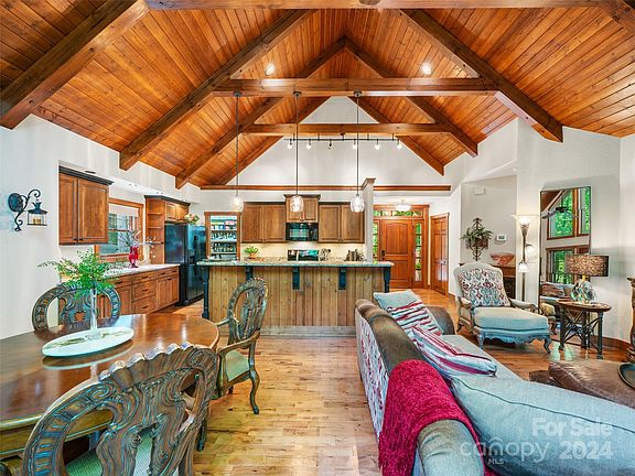 HOME nestled amongst the tree tops- Imagine sitting on your back deck & listening to the roaring sound of the nearby creek (right off the back) as its rustling down stream - Watching all nature has to offer - Or, walk down the beautifully designed landscaped walkway for a closer look - "It is a spa like moment" - Home is full of character & oozing with charm - Vaulted Cathedral ceilings in Family Room & Kitchen- Screened in Porch to also enjoy INCREDIBLE VIEWS & ROARS of the CREEK - Stone fireplace in Family Room, & also Downstairs Den - Multiple decks- Beautiful Main Bedroom has wood ceilings, & Bath with beautiful free standing Tub - Recently added 2 car garage - with huge storage space above that could be converted into an additional workshop, studio, or extra sleeping space - Home is located off 80 south, near Mt MITCHELL, HIGHEST PEAK EAST OF THE MISSISSIPPI, yet only minutes to downtown Burnsville & approx 45 min to Asheville. Community is gated with the most amazing Gate ever!