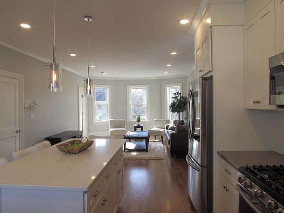 Gut Renovated Condo. Master Bedroom With En-suite Bathroom, 2 Additional Bedrooms, A Full Bath And In-Unit Laundry. Open Floor Plan, Living Room and Kitchen. The Kitchen has Stainless Steel Appliances, Quartz Counter-tops, and An Island With Seating. High Ceilings, Hardwood Floors, New Systems, Private Storage in Basement and Parking. Great Location.