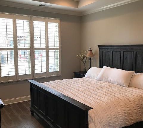 Rare end unit town home available! Features include all hardwoods and tile areas down-Plantation Shutters throughout, white farm sink w/ gorgeous white cabinets/granite & butler's pantry in kitchen,covered patio,& tons of storage.End unit with side yard! Tons of natural light into the home from the extra windows. 2 car driveway/ No exterior upkeep!
