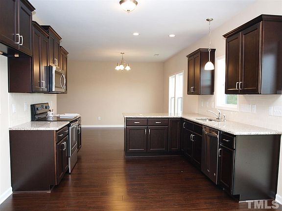 Brand New 4 Bedroom/2.5 Bath Home . Main floor features cozy Family room with electric fireplace & Luxury Vinyl Tile floors. Open Kitchen offers Granite counter tops, tile backslash and stainless steel appliances. 2nd Floor offers Spacious Master Retreat with vaulted ceiling, huge walk-in closet and great bath with dual vanity, garden tub and separate shower. Also featuring Laundry room, 2nd bath with dual sinks and 3 additional bedrooms. Finished 2 car garage with electric opener. 15 minutes from Raleigh. No HOA!
