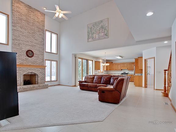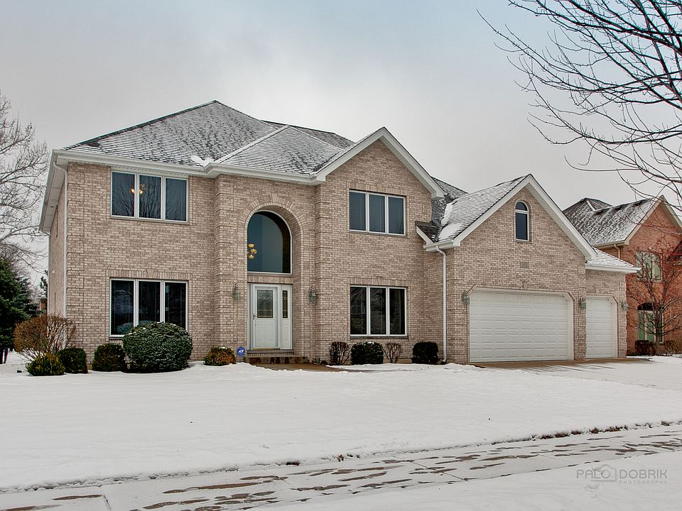 Sharp all brick 2 story with soaring family room with floor to ceiling brick fireplace. Formal living room and dining rooms ceramic tile flooring in Foyer, Kitchen. First floor bedroom can be den or office. Large kitchen open to family room, with oak cabinets, granite counters and island, stainless steel appliances, large eating area in kitchen.Finished basement has powder room recessed lighting, huge rooms, great for entertaining, kids or hobbies and room for storage. 1st floor oak stairway with oak railings overlooking family room. Master bedroom suite with tray ceiling, private master bath with double sinks,separate whirlpool tub and shower. 3 huge walk in closets. 2 furnaces for zoned heating, nice size laundry room with cabinets and utility sink.6 panel solid oak doors. Patio off the kitchen, 3 car garage has 2 feet added from the builder. roof replaced in 2019, so much more!
